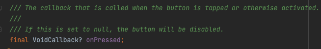 5. 상위위젯에서 파라미터로 onPressed 를 내려줄것이고, 내려준 onPressed 를 저장할 변수를 선언해준다!