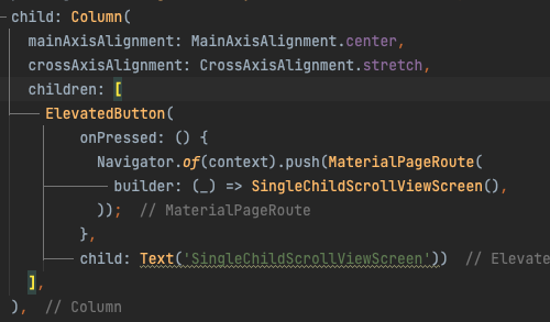 builder 와 Text 만 다룰 것이다. 이 두개만 넣어주면 ElevatedButton을 매핑 할 수 있게끔 할 것이다.